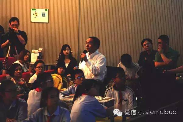 由 Dr.Carpenter 主讲、曹伟勋博士翻译的“互联网+”时代学习方式变革的报告,重点分析了如何培养学生的野心,指出在现代化的教育中学生能力和思维的培养比知识的灌输更重要。并且亲自带领上海市洵阳中学七(3)班的学生们体验了STEM与物联网创新教育结合的课程,为奋战在第一线的中国教学工作者们上了一堂生动的示范课。